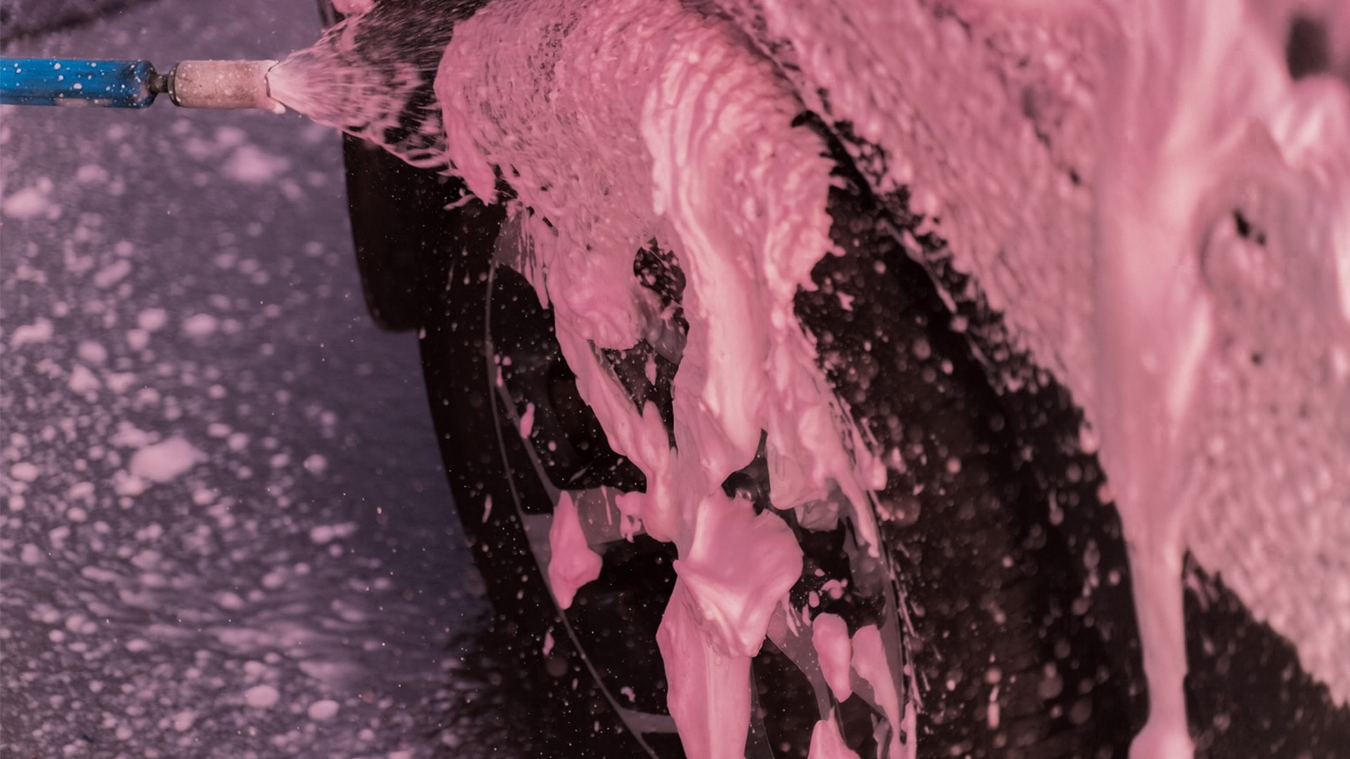 5 állásos autómosónk rózsaszín „Csodahabbal”, forró vízzel, porszívóval és törlőkendő automatával – nyitva 0–24!